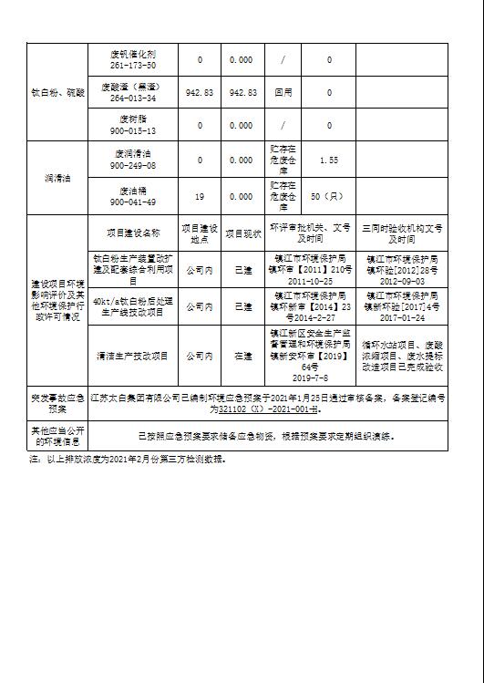 江苏太白集团有限公司环境信息公开表